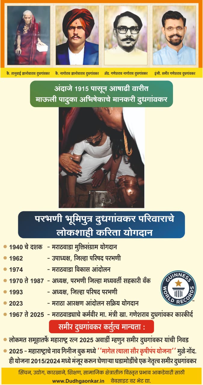 नीतिमान नागोराव ज्ञानोबाराव दुधगांवकर (शिंदेशाही-राऊत) घराण्याच्या सध्याच्या पिढीतील समीर यांचे सामाजिक कार्य परभणी आणि त्यापलीकडे मूल्याधारित परिवर्तनासाठी एक आदर्श ठरले आहे, ज्याचा परिणाम १,००,०००+ गावकऱ्यांवर, राज्याच्या लाखो शेतकऱ्यांवर आणि तरुणांवर झाला आहे, स्थानिक आर्थिक लाभांमध्ये कोट्यवधी रुपयांचा समावेश आहे