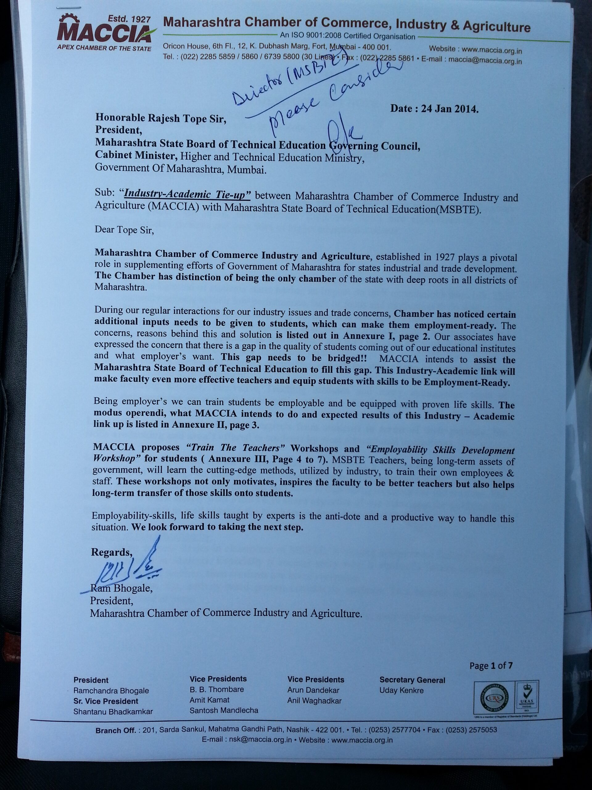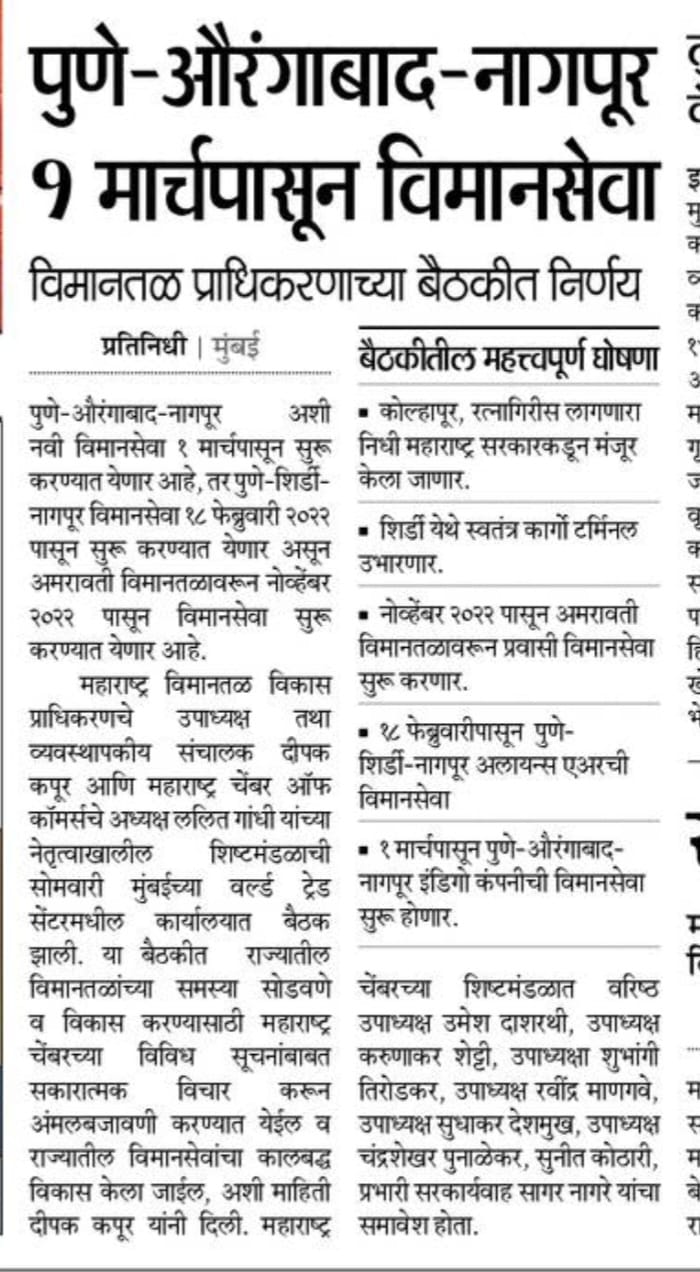- जिल्हास्तरीय शेतमाल वाहतुकीसाठी विमान उड्डाणाची व्यवस्था असण्यासाठी मंजुरी २०२२ पासून महाराष्ट्र चेंबरने करून घेतली आहे.