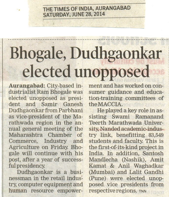c) CSR धोरणाची अंमलबजावणी: ९ जून २०१४ रोजी महाराष्ट्र शासनाने GR काढून CSR धोरण लागू केले आणि राज्य उद्योग व्यापार संघटनेतून सदस्याची नेमणूक करण्याची विचारणा MACCIA ला केली. चेंबरने समीर दुधगांवकर यांचे नाव सुचवले, ज्यामुळे CSR उपक्रमांना गती मिळाली.