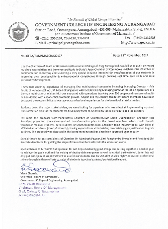 - ४ मार्च २०१५ रोजी औरंगाबाद येथे मराठवाडा शिक्षण प्रसारक मंडळ (MSPM) आणि MACCIA यांच्यात शैक्षणिक आणि औद्योगिक क्षेत्रांना जोडणारा MoU घडवून आणला, ज्यामुळे अनेक संस्थांना उद्योगजगताशी जोडण्यात यश मिळाले.